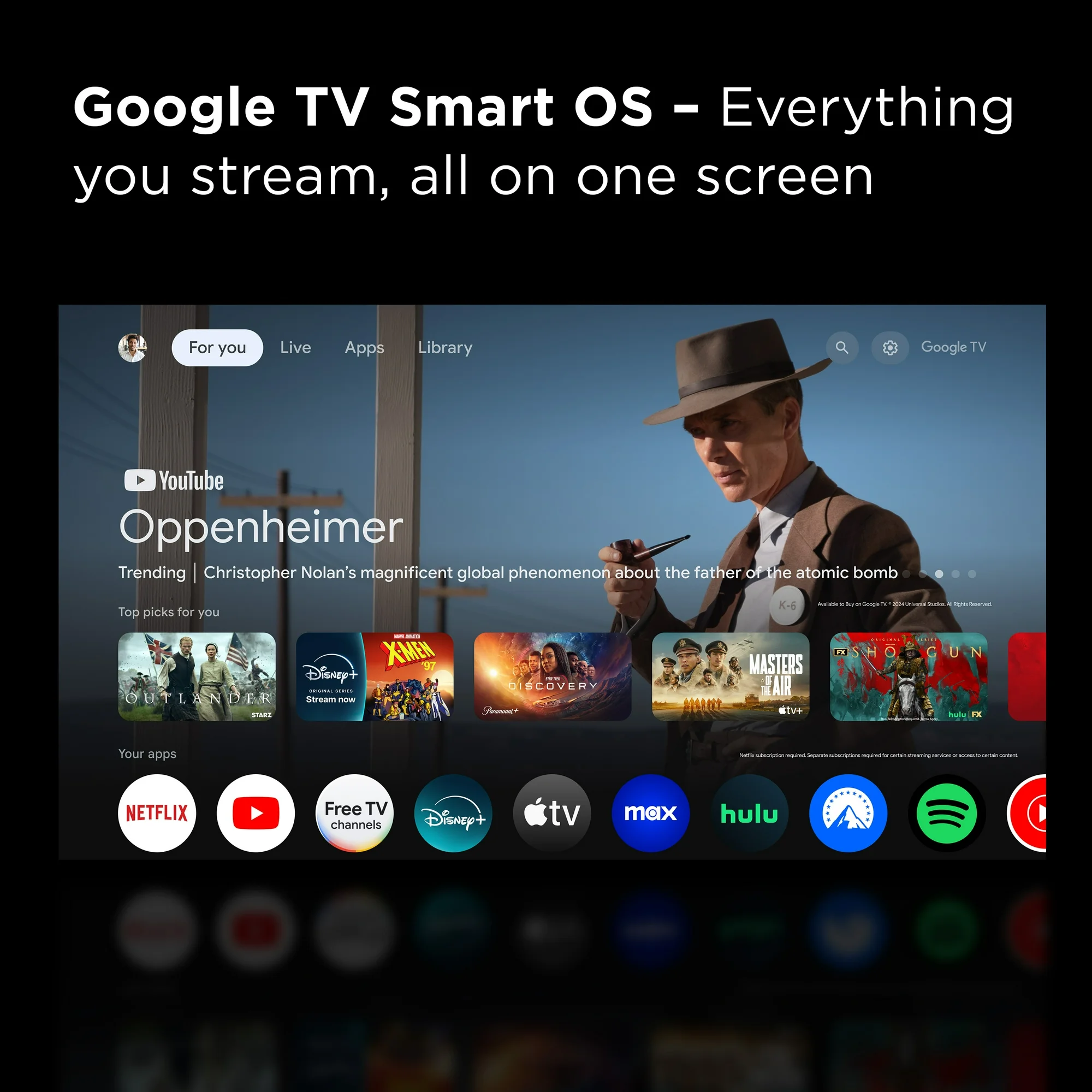 • Google TV Smart OS with Voice Remote: Browse, search, and discover entertainment with ease. Plus, enjoy seamless integration with Google Chromecast to stream your favorite apps, shows, and movies from thousands of sources.